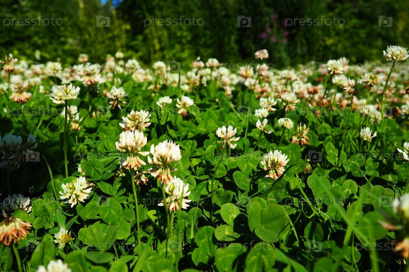 Trifolium repens, белый клевер, травянистое многолетнее растение семейства бобовых Fabaceae, известное как Leguminosae. Травянистое многолетнее растение. Он низкорослый с головами белых цветов. Карелия