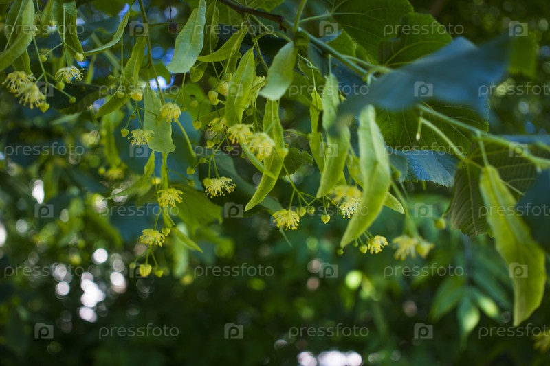 Липа, липа, липа или липа с нераспустившимся цветком. Дерево липа собирается цвести. Пчела собирает липовый мед