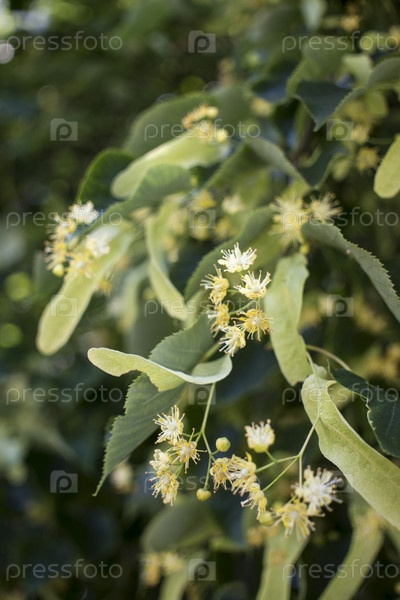 Липа, липа, липа или липа с нераспустившимся цветком. Дерево липа собирается цвести. Пчела собирает липовый мед
