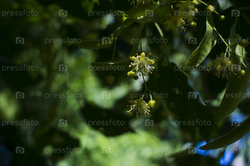 Липа, липа, липа или липа с нераспустившимся цветком. Дерево липа собирается цвести. Пчела собирает липовый мед