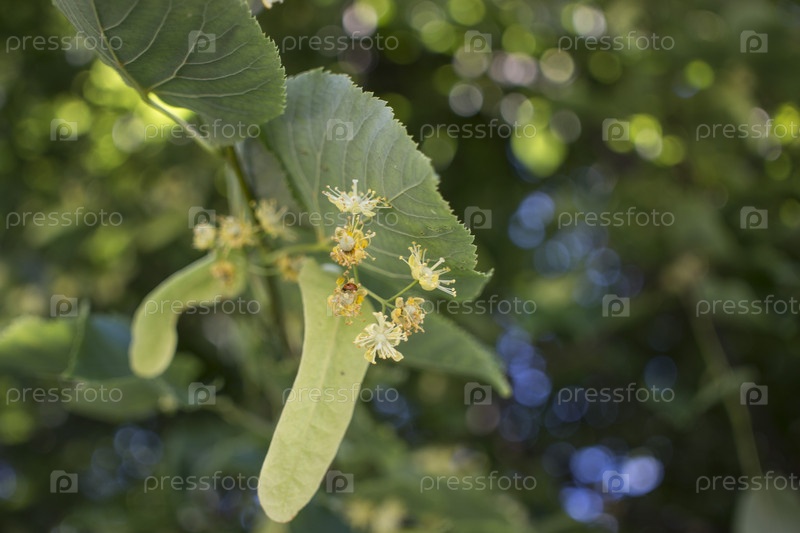 Липа, липа, липа или липа с нераспустившимся цветком. Дерево липа собирается цвести. Пчела собирает липовый мед