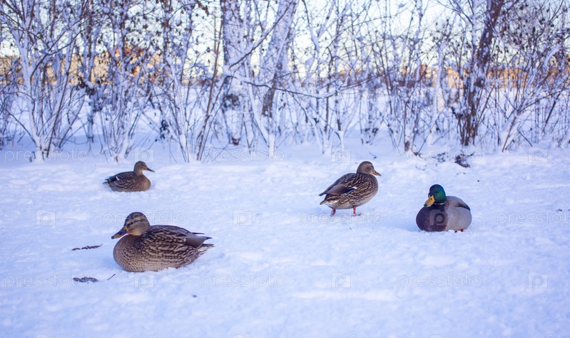 Стая уток на льду