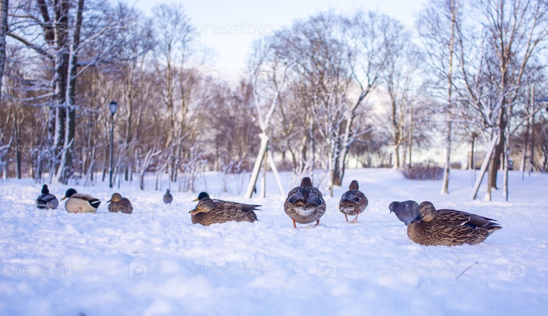 Стая уток на льду