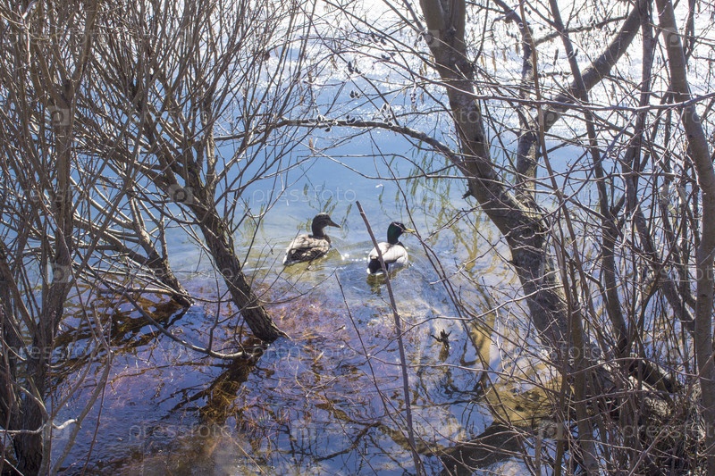 Утиная пара на зиму. концепция крыльев любви. Скопируйте пространство