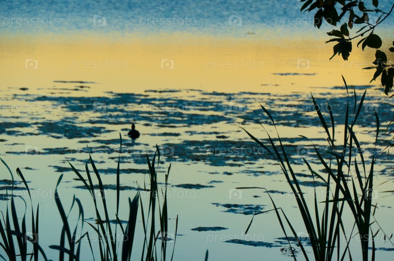 Силуэт утки на золотом закате