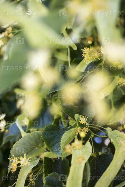 Липа, липа, липа или липа с нераспустившимся цветком. Дерево липа собирается цвести. Пчела собирает липовый мед
