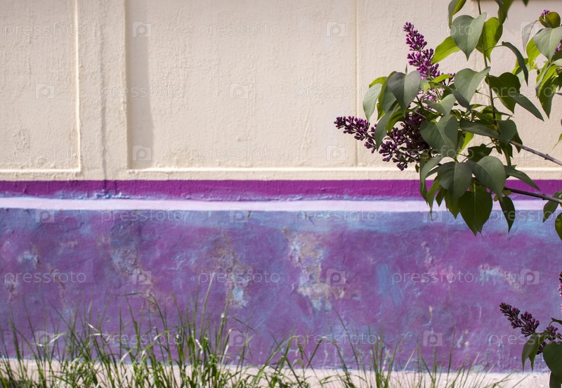 Ветка цветущей сирени на бежево-фиолетовом фоне