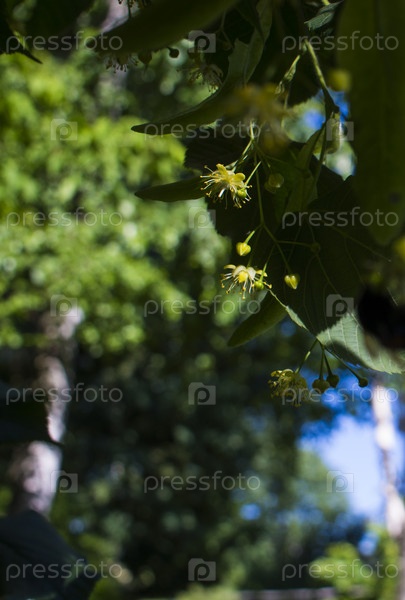 Липа, липа, липа или липа с нераспустившимся цветком. Дерево липа собирается цвести. Пчела собирает липовый мед