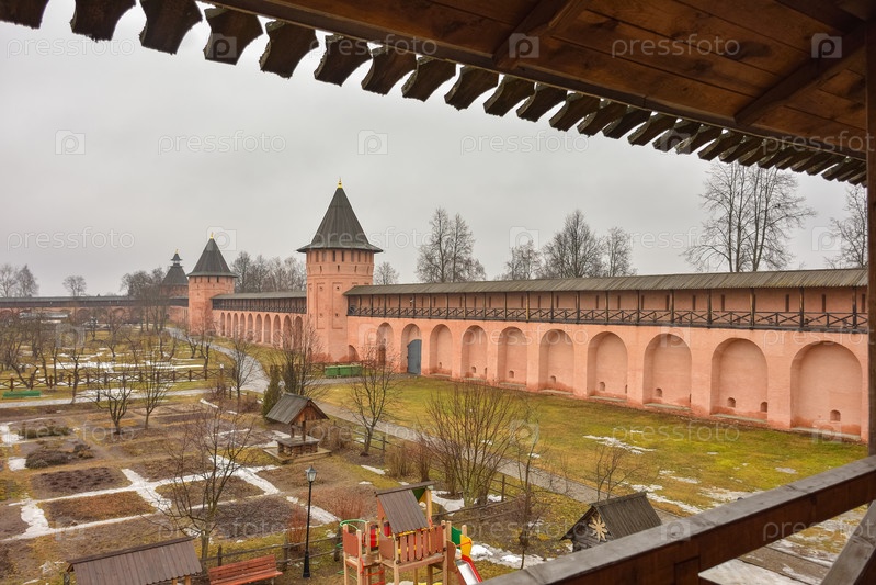 Суздаль / Россия - 08 марта 2020 г.: вид на стены Спасо-Евфимиева монастыря