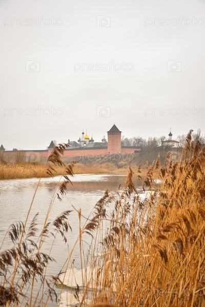 Суздаль / Россия - 08 марта 2020 г.: вид на стены монастыря Святого Евфимия