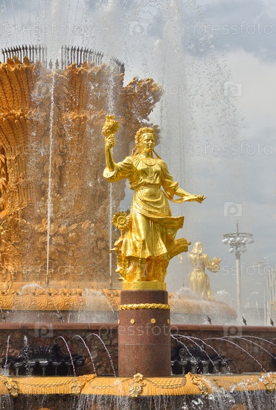 Золотая скульптура на фонтане Дружба народов