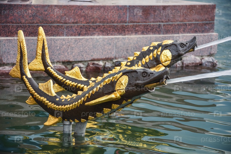 Фонтан рыбы, фонтан в виде осетровой рыбы