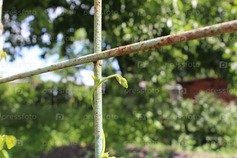 Ростки ростков фасоли. Вьющееся растение. Весна. Обрезать
