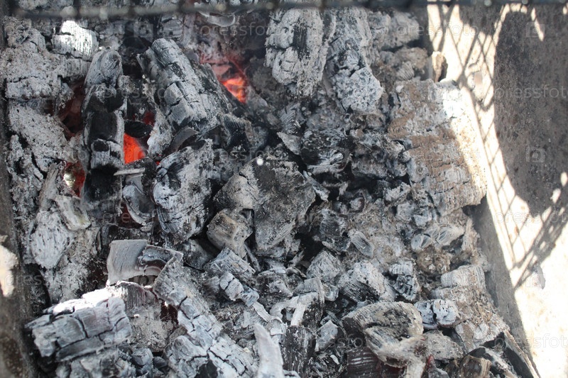 Пепельные угли крупным планом черно-бело-серый с красным фоном праздника барбекю выходного дня