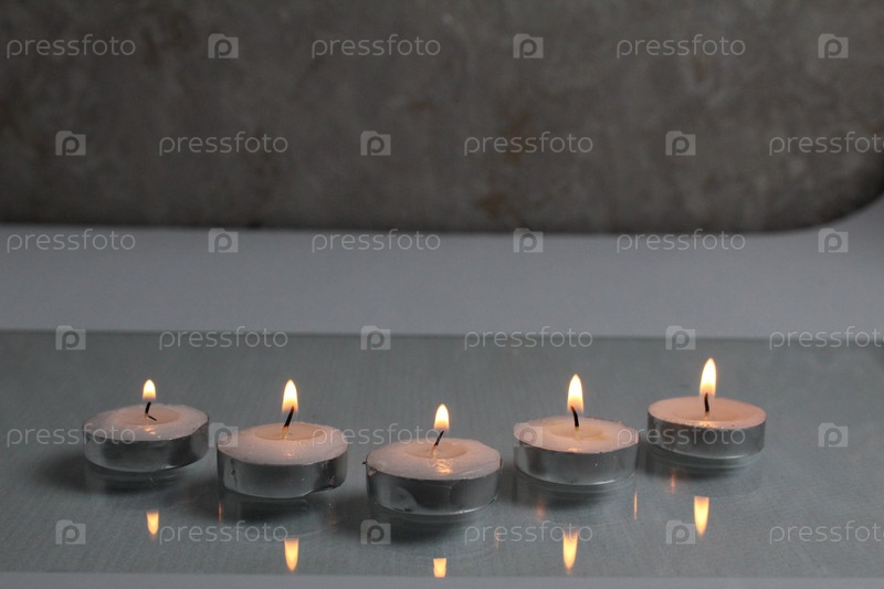 Пять маленьких свечек горят и стоят треугольником. вид сбоку. Гадание Хеллоуин Мистик