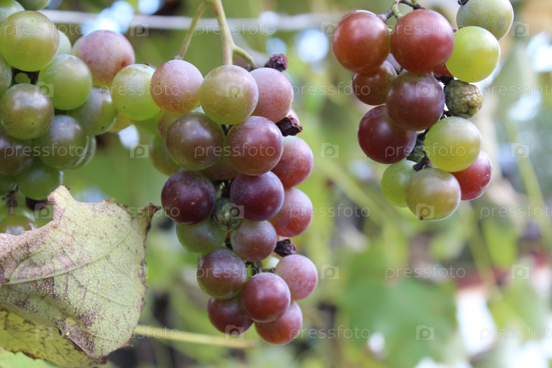 Виноград на ветке красный зеленый крупным планом. Выращивание ягод винограда. Сорт винограда для домашнего виноделия