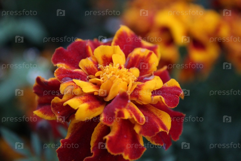 Оранжево-жёлтый цветок календулы крупным планом. Выращивание цветов. Цветная наука осень лето ароматные домашние цвета для флористов