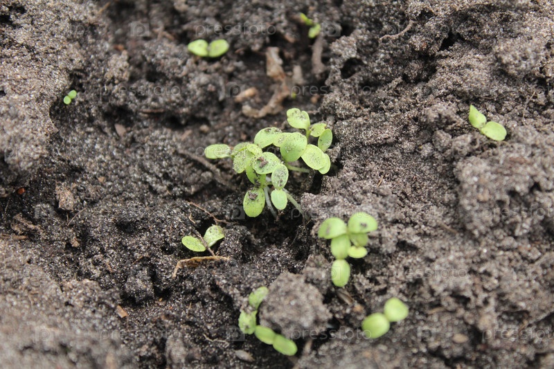Выращивание рассады микрозелени, овощей. Прорастание из почвы земли. Новая жизнь