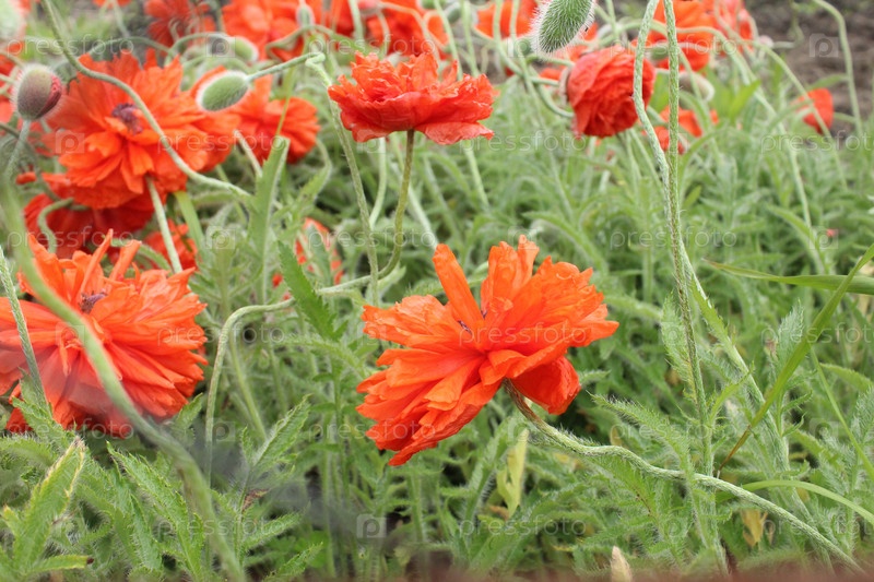 Маки - декоративные красные летние цветы во время цветения. Лето