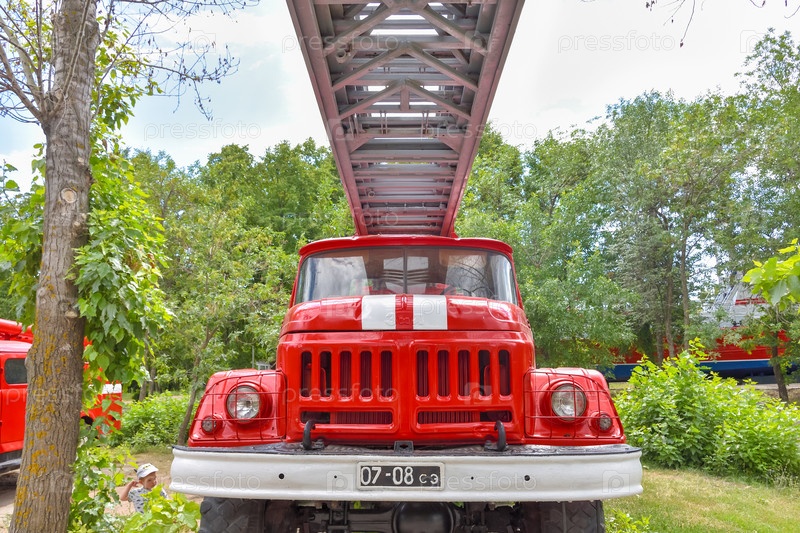 Саратов / Россия - 25 июля 2020 г.: Пожарная машина в парке Победы в Саратове
