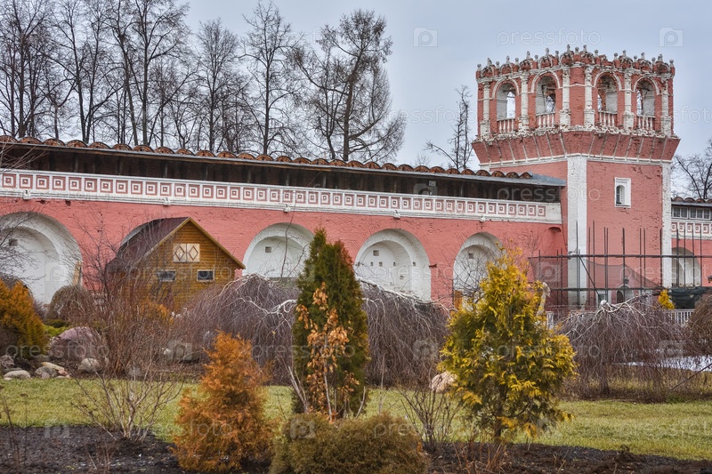 Москва, Россия - 01 марта 2020 г.: стены и сторожевые башни Донского монастыря в Москве