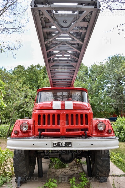 Саратов / Россия - 25 июля 2020 г.: Пожарная машина в парке Победы в Саратове