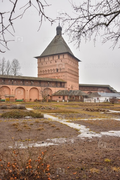Суздаль / Россия - 08 марта 2020 г.: вид на стены Спасо-Евфимиева монастыря