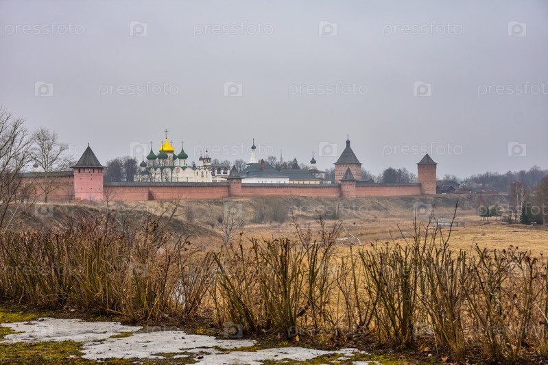 Суздаль / Россия - 08 марта 2020 г.: вид на стены Спасо-Евфимиева монастыря