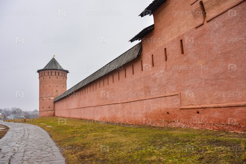 Суздаль / Россия - 08 марта 2020 г.: вид на стены Спасо-Евфимиева монастыря
