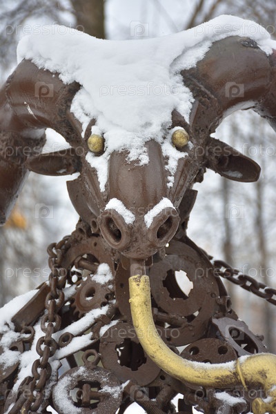 бронзовая фигура козерога в снегу