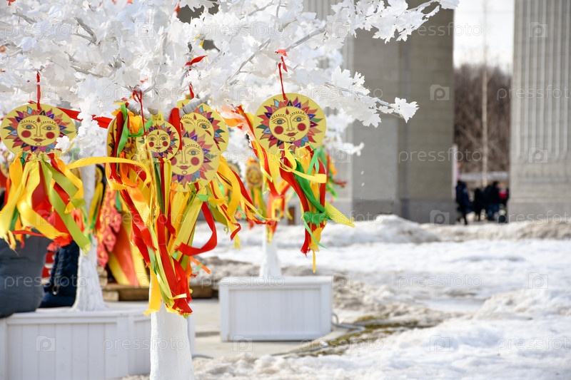 символ карнавала на белом дереве в парке