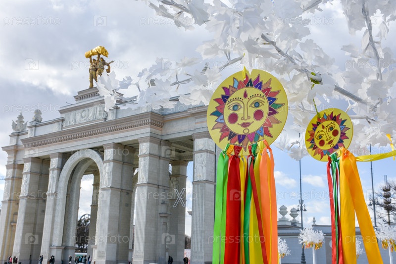 Эмблема солнца с разноцветными лентами на ветвях, изображение солнца