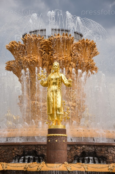 Золотая скульптура на фонтане Дружба народов