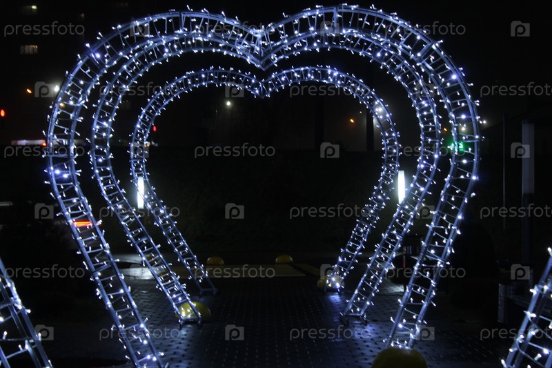 Новогодний рождественский свет с освещенным коридором туннелей в парке. Праздничное рождественское освещение. Праздничная атмосфера. Украшение