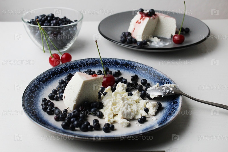 Десерт с сезонными ягодами черники. Творог с черникой. Сезонный десерт, летние витамины, правильное питание. Домашние блюда из творога. Белок