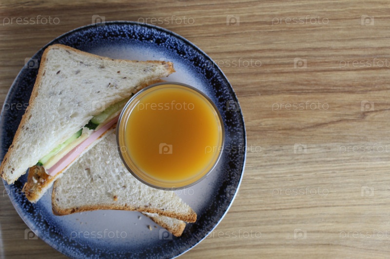 Завтрак, перекус, обед, два бутерброда на тарелке и стакан сока на столе. Типа супер. Плоская планировка