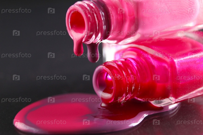 Пролитый ногтевой лак в крупном плане на черном фоне с местом для текста copyspace
