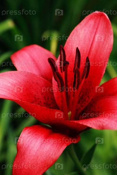 Красная лилия в саду