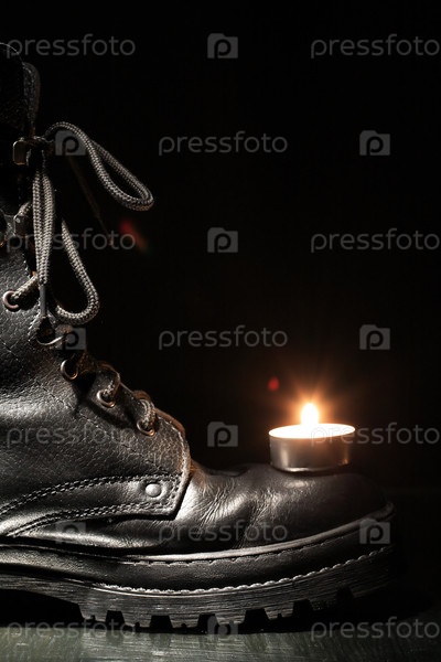 Военный ботинок и свеча