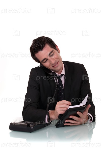 Бизнесмен с телефоном и ежедневником