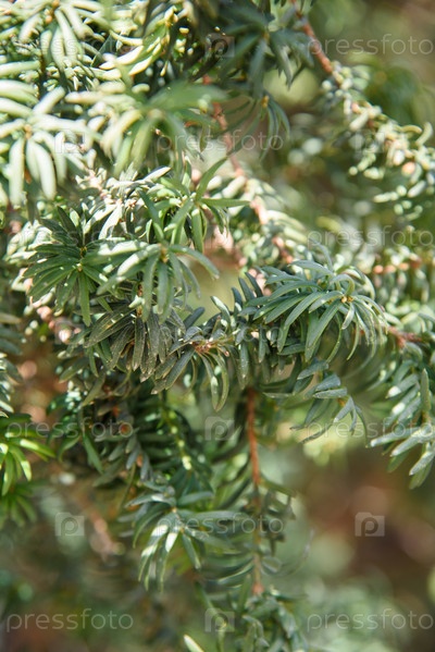 ветви тиса Taxus baccata. естественный фон. выборочный фокус