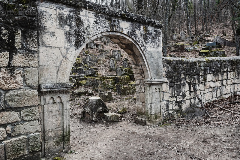 Надгробия на караимском древнем кладбище Балта-Тиймез. Бахчисарай, Крым