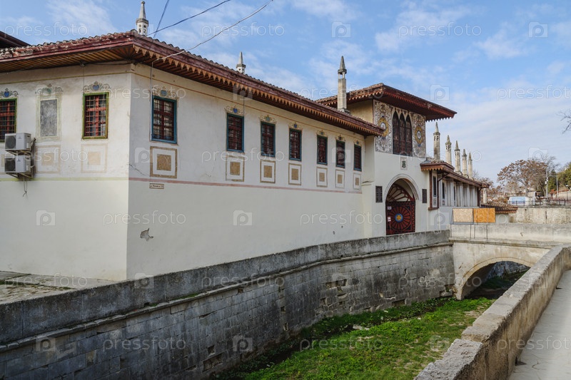 Вид на северные ворота Ханского дворца с Ривер-стрит весной. Бахчисарай. Крым