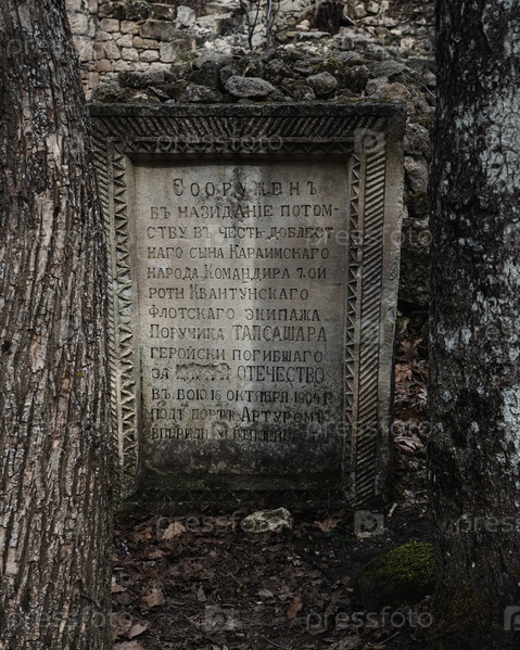 Надгробия на караимском древнем кладбище Балта-Тиймез. Бахчисарай, Крым
