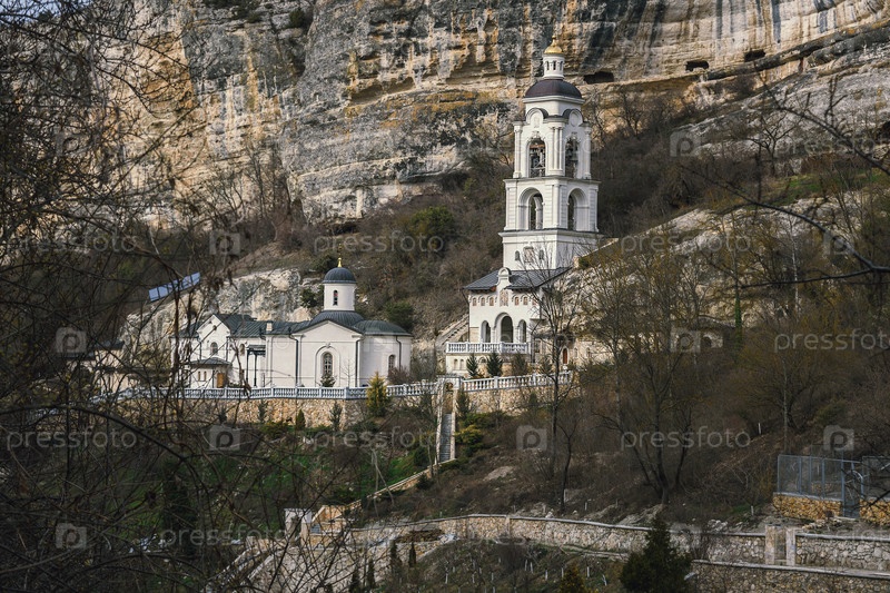 Вид на Успенский пещерный монастырь в Бахчисарае весной. Крым