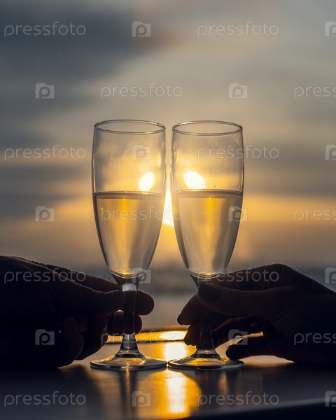 Счастливая молодая пара сидит утром в постели и завтракает в отеле