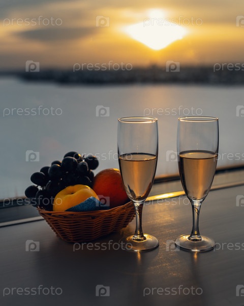 Счастливая молодая пара сидит утром в постели и завтракает в отеле