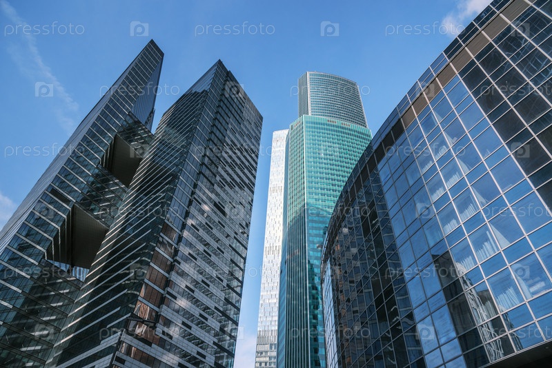 Небоскребы в деловом районе Москва-Сити на фоне неба. Москва. Россия