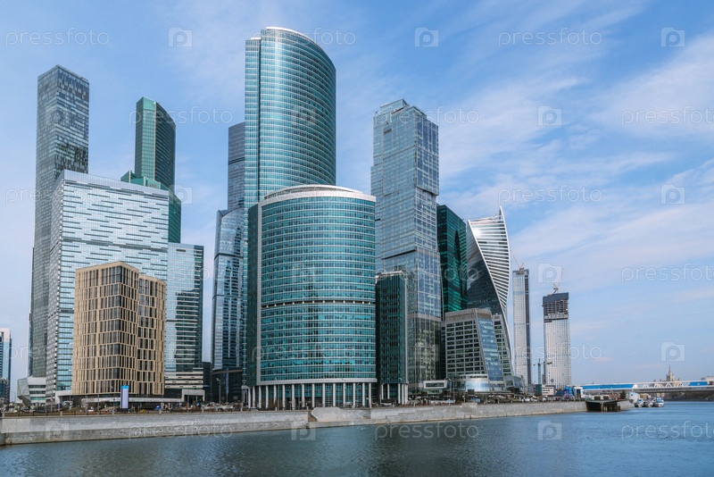Вид на небоскребы района Москва-Сити в солнечный день. Москва. Россия