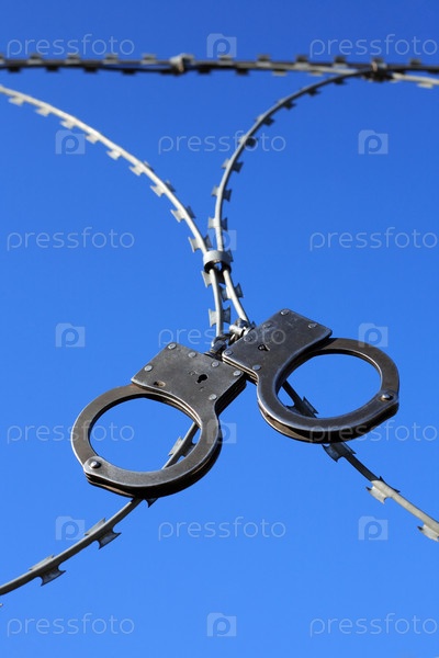 Старые наручники на колючей проволоке